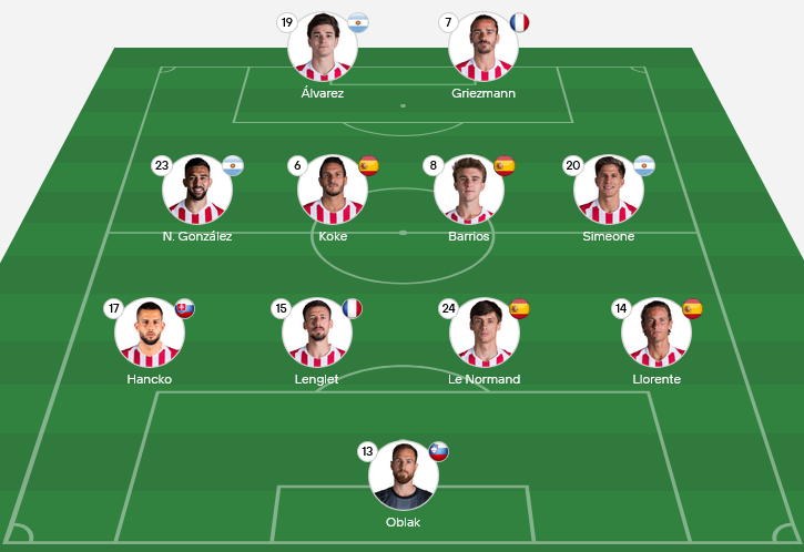 | Atlético Madrid | 🟩 🟨 🟩 🟩 🟩 |