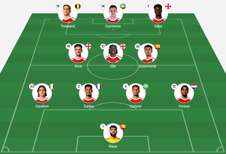Arsenal | 🟩 🟩 🟨 🟩 🟩 |
