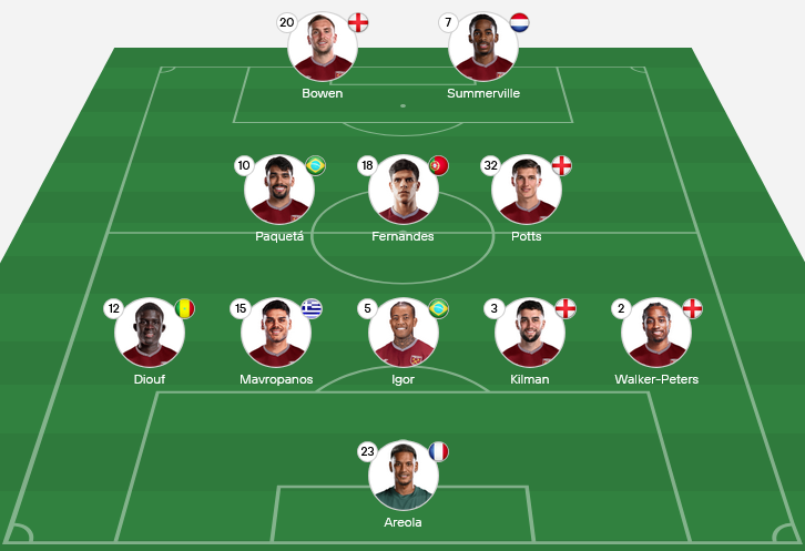 West Ham | 🟩 🟥 🟨 🟩 🟥 |