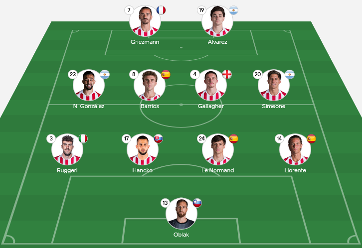 Likely Tactics: A 3-5-2, with wing-backs pushing forward, midfield intensity, and Griezmann orchestrating attacks between the lines.