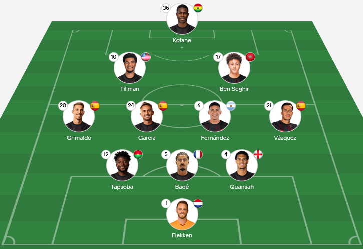 A. Grimaldo – Left-back, known for his attacking runs and set-piece deliveries.