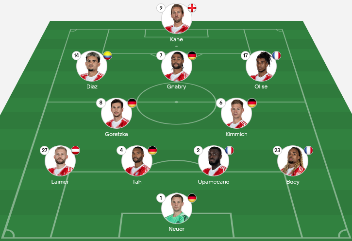 Bayern: Harry Kane, Serge Gnabry, Jamal Musiala