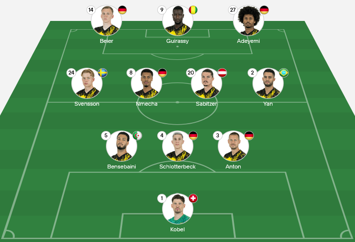 | Current Form (Dortmund) | Undefeated in Bundesliga: 4 wins, 2 draws in opening 6 matches. |