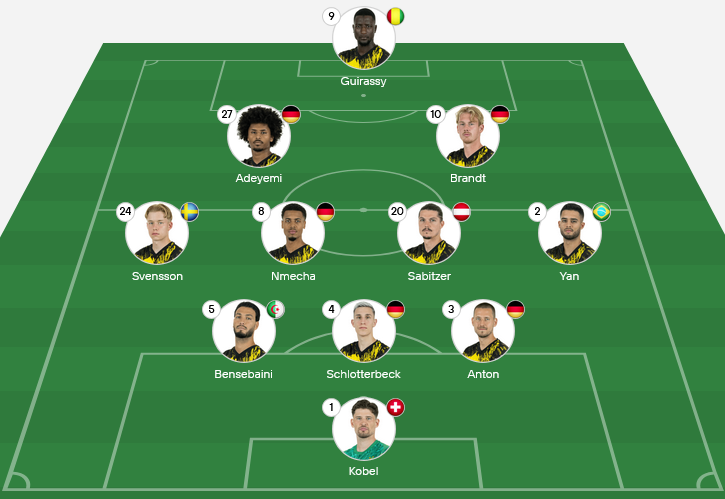 Borussia Dortmund | 🟩 🟨 🟩 🟨 🟥 |