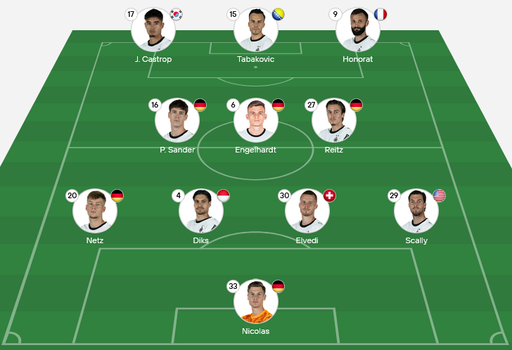 Florian Neuhaus – Midfield organizer, crucial in both attack and defensive transitions.