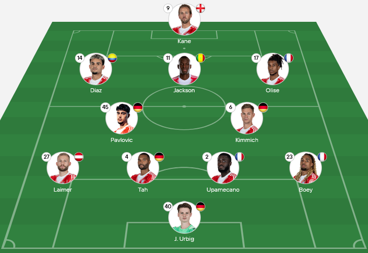 Bayern are likely to field a 4-2-3-1 formation, prioritizing possession control, rapid interchanges, and exploiting wide channels. Full-backs provide attacking width while forwards create space and scoring opportunities. Away from home, Bayern remain composed, patient in build-up, and lethal in transitions.