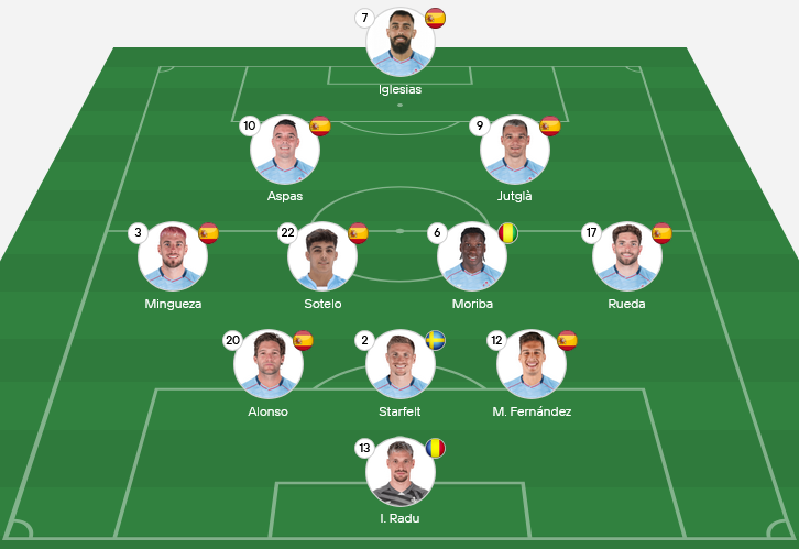 Iago Aspas – Veteran striker and captain, crucial for finishing and leading attacks.
