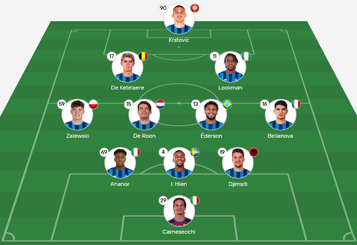 | Atalanta | Win, Draw, Win, Loss, Win; consistent with strong attack and pressing. |