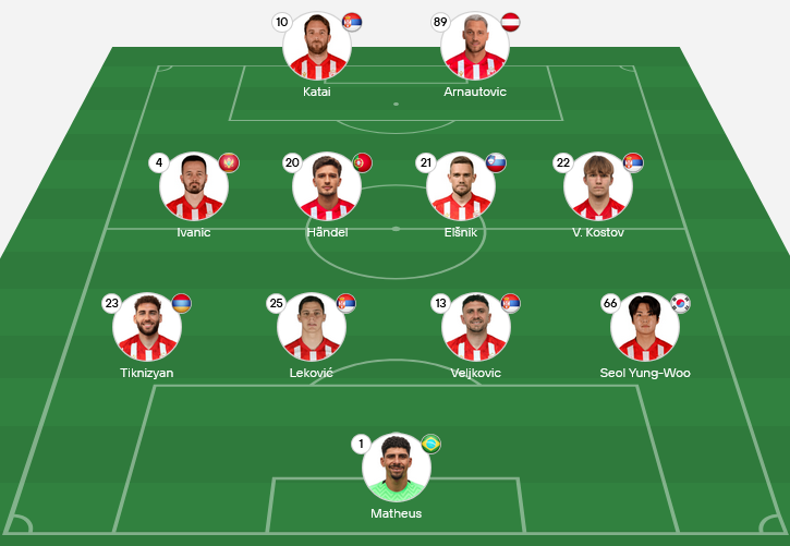 Likely Tactics: A 4-3-3, focusing on wide play, pressing high, and creating overloads to break Crvena Zvezda’s defensive lines.