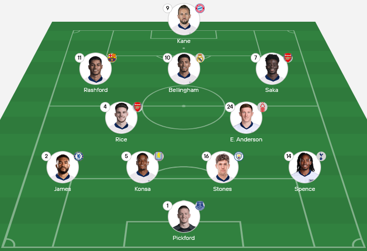 • Jude Bellingham – England’s creative engine, providing drive and balance in midfield.
