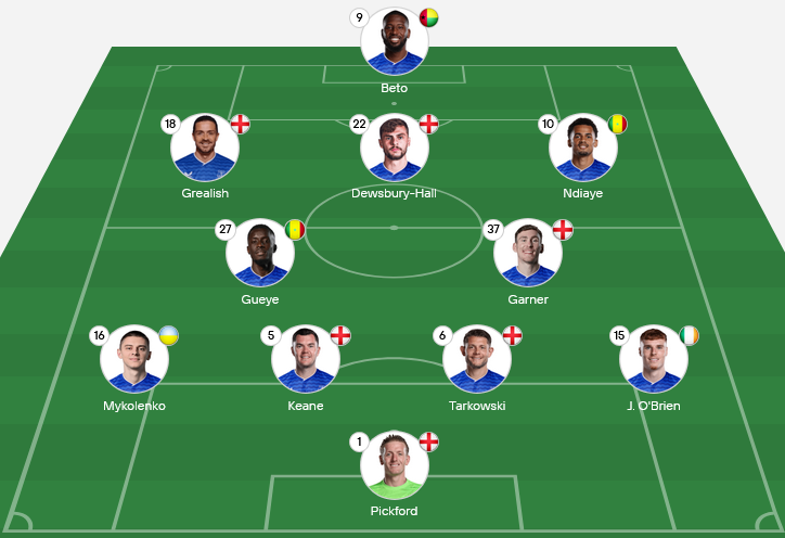 Dominic Calvert-Lewin – Target man leading the line, vital for aerial duels and hold-up play.