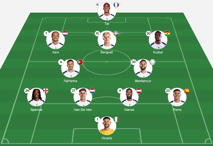 Spurs will line up in a 4-3-3 system emphasizing ball retention, positional fluidity, and high pressing. Maddison’s movement between the lines will be key to unlocking Everton’s low block, while full-backs Udogie and Porro provide attacking support from wide areas.