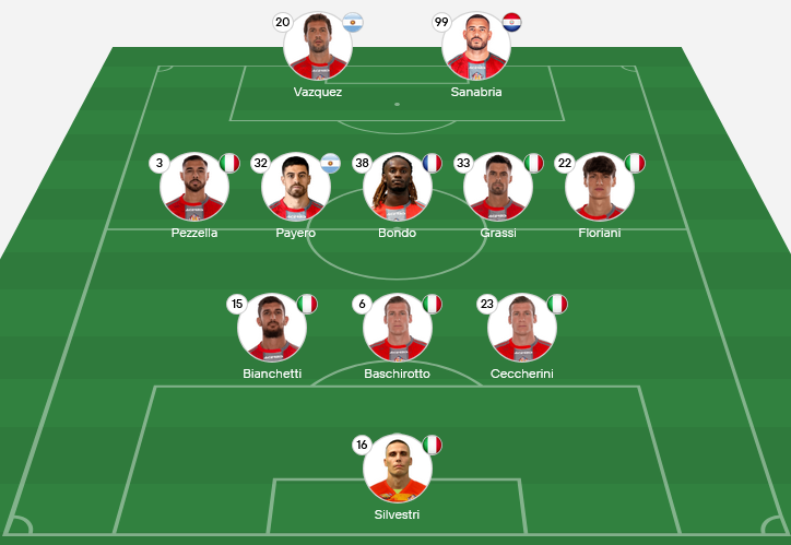 Likely Tactics: A 3-5-2, controlling the midfield and using wing-backs to stretch the Cremonese defense.
