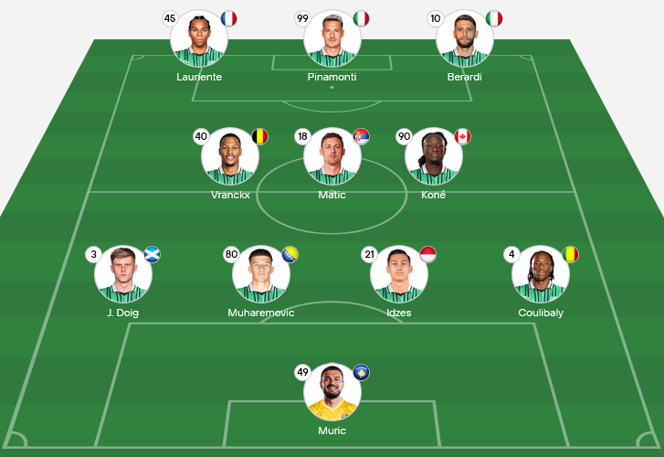 Likely Tactics: A 4-2-3-1, defending compactly while relying on Berardi and Pinamonti to exploit spaces left by Inter.