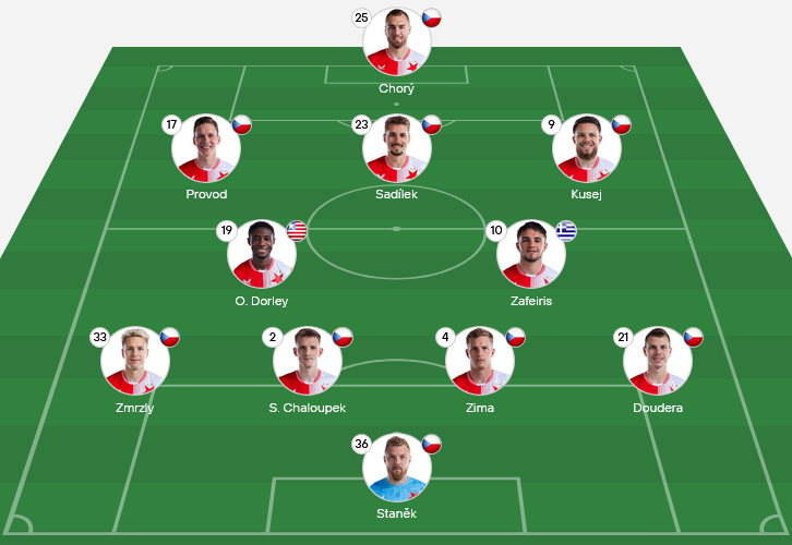 Slavia Praha: Likely to play in a compact 4-2-3-1, defending deep and countering through wide players.