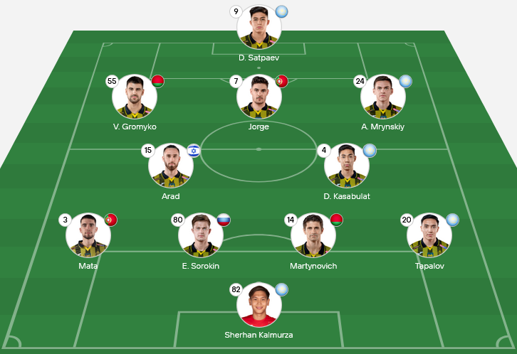 Kairat | 🟩 🟨 🟥 🟨 🟩 |
