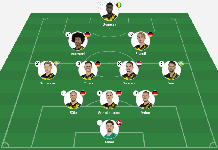 Tactics: Dortmund typically play 4-2-3-1, focusing on possession control, wide play, and vertical transitions. Expect them to test København’s defensive lines with quick combinations and overlapping runs.