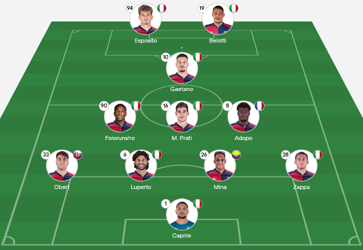 Likely Tactics: Cagliari are likely to adopt a 3-5-2 system, staying compact, absorbing pressure, and striking on the counter with Lapadula as their focal point.
