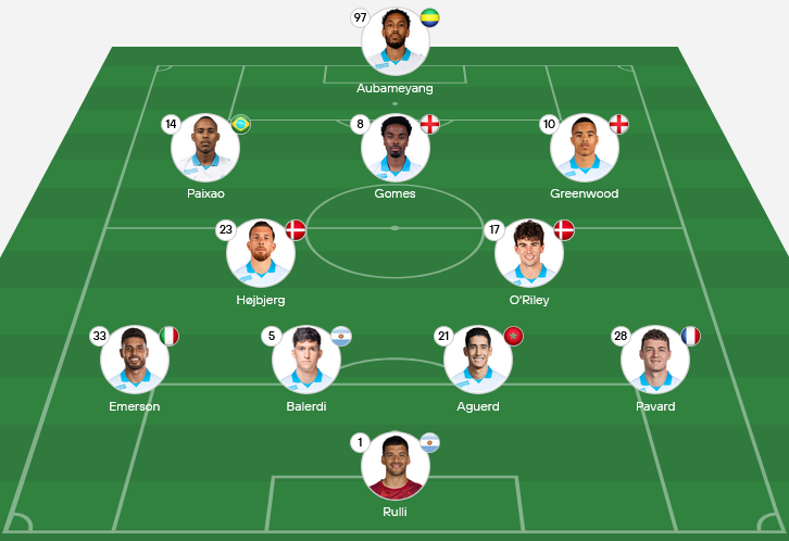 Pau López – Clauss, Mbemba, Gigot, Lodi – Veretout, Kondogbia, Harit – Sarr, Aubameyang, Ndiaye