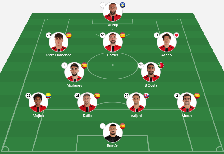 Likely Tactics: A 4-4-2, focused on defensive solidity, hitting Mallorca quickly on the break, and maintaining a compact shape.