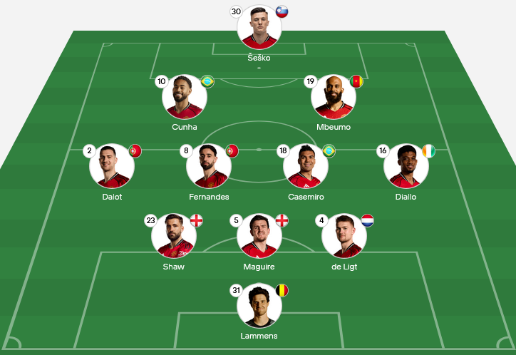 United are likely to deploy a 4-2-3-1 or 4-3-3 setup, focusing on pressing high, controlling parity in midfield, and attacking with width and depth. At home, they’ll aim to dominate possession and create chances through sustained pressure and effective wide play.