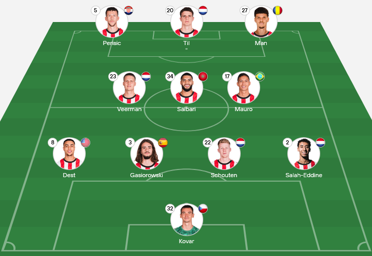 • Quick transitions and exploiting spaces behind PSV’s full-backs will be vital.