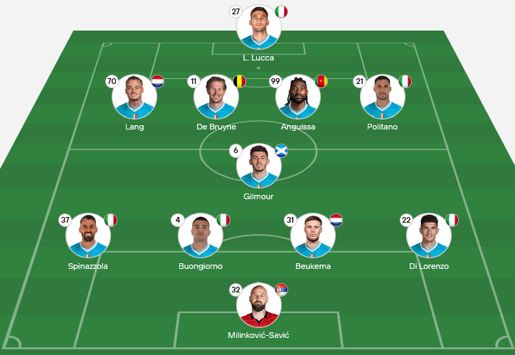 • Napoli will maintain compact defensive lines, relying on their midfield to control tempo and break swiftly through wide channels. They will target spaces behind PSV’s defence using pace and precision.