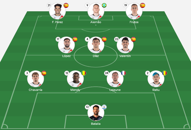 Rayo are expected to line up in a 4-2-3-1 formation, focusing on pressing high, rapid transitions, and exploiting wide areas. The midfield duo screens the defense and launches quick attacks, while the forward trio creates space and scoring opportunities.