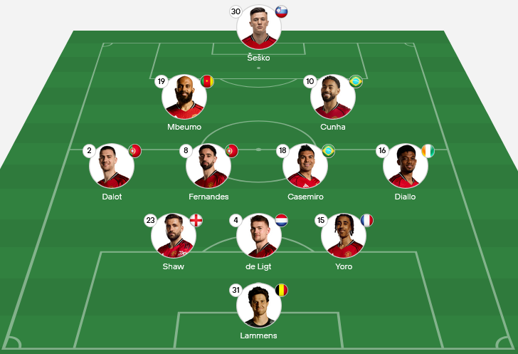 Bruno Fernandes – Midfield creator, dictates tempo and contributes goals.